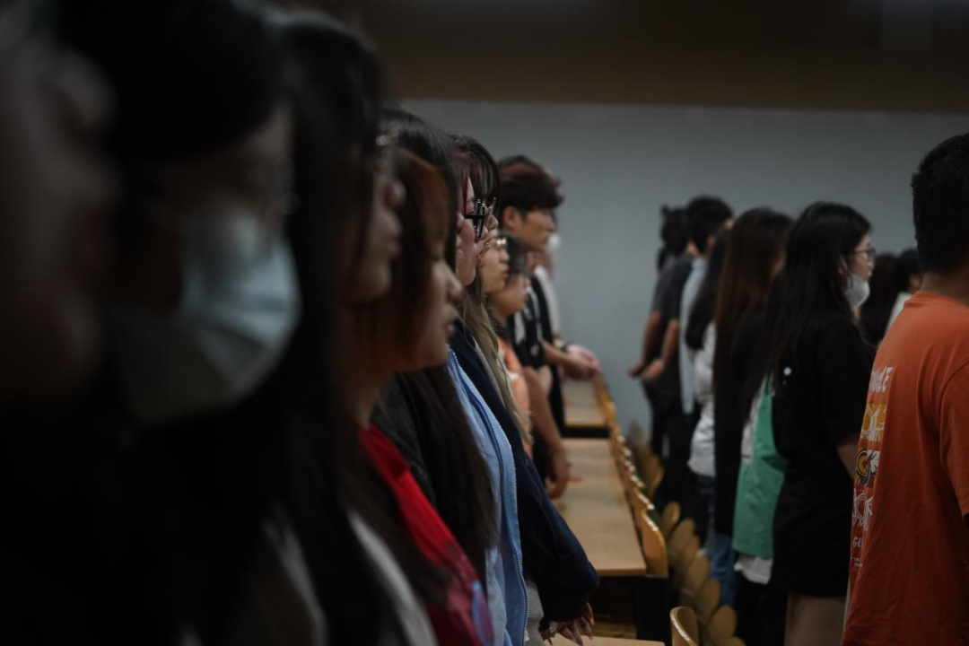 会议伊始,郑冰洁同志带领同学们奏唱国歌。