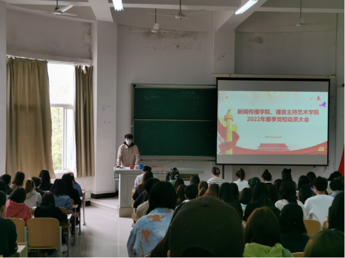 2022年4月4日中午,新闻传播学院分党校2022年春季开班式在3201召开,新闻传播学院党总支部书记侯亮荣出席大会并做动员讲话,会议由蒋宇杰同志主持,各年级辅导员出席大会,第36期党校全体学员参加会议。