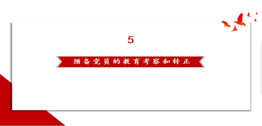 审批通过的预备党员编入党支部和党小组,对预备党员继续进行教育和考察并进行入党宣誓仪式。预备党员将在一年时间内参加党的组织生活、听个人汇报、个别谈心、集中培训、实践锻炼等。预备期满后,可书面向党支部提出转正申请。经上级党委三个月内审批通 过后转为正式党员。