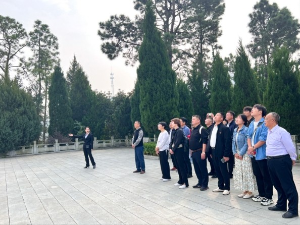 在纪念碑前,文化管理学院党员师生团队深深地向革命烈士默哀致敬。在徐海东大将及亲属烈士纪念馆里,徐海东骑着战马的雕像仰头眺望远方,好似在看中国如今的繁荣昌盛,国泰民安。