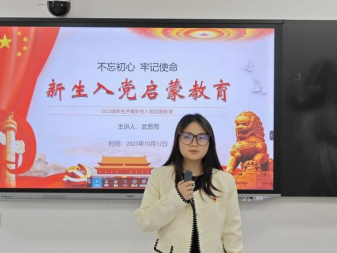 习近平总书记曾讲过:“人生的扣子从一开始就要扣好”。为增强新生对党的认识,引领新生扣好入党“第一粒扣子”,端正入党动机,明确入党条件,坚定入党信念,解答入党前期遇到的疑问。文化管理学院于10月12日在大悟校区组织2023级全体新生分班开展了新生入党启蒙教育。本次活动由文化管理学院党总支部书记张爱军、组织委员武思雨主讲。