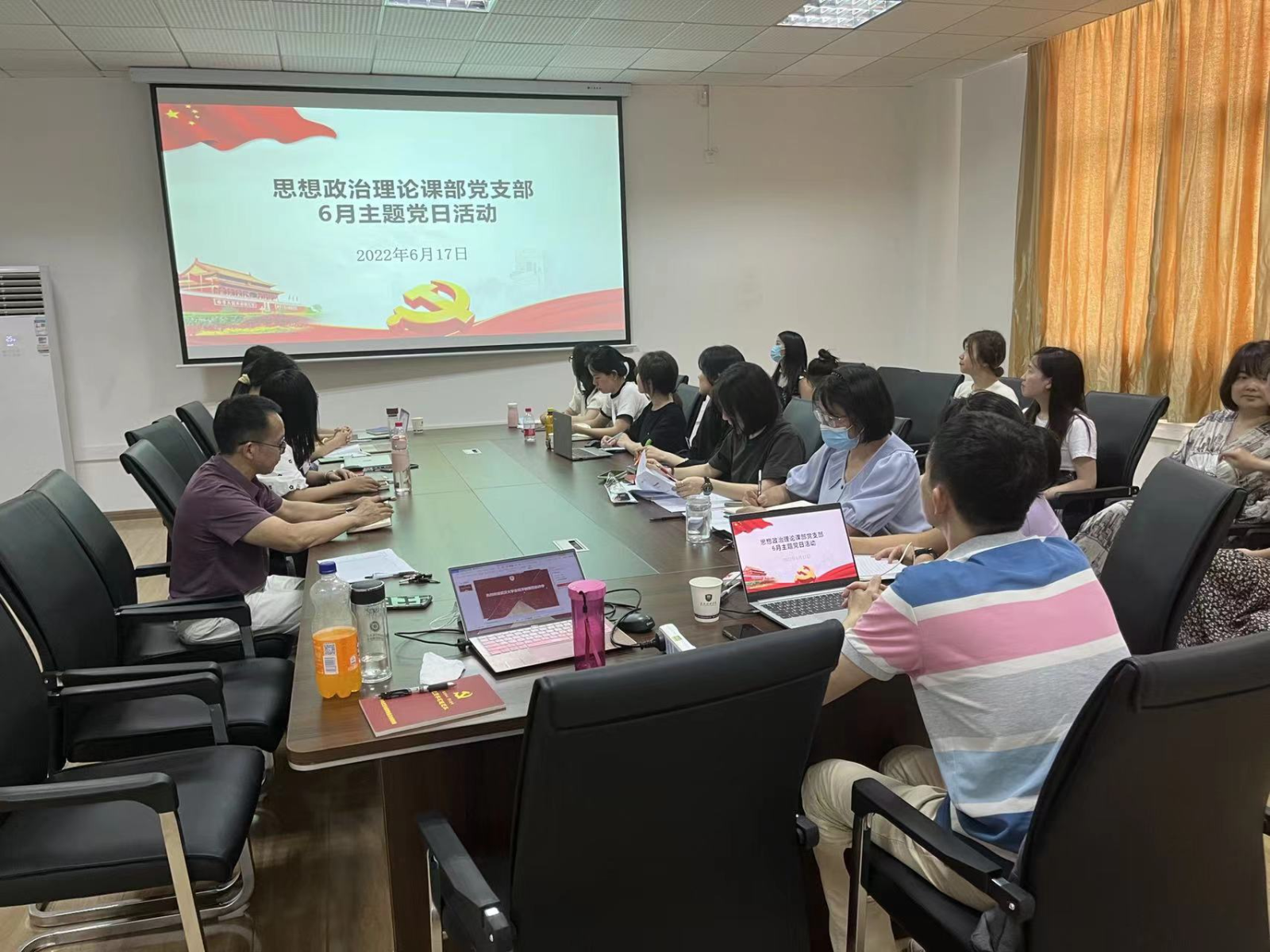 2022年6月17日,思想政治理论课部直属支部在8201会议室召6月主题党日活动。会议由思想政治理论课部党支部书记李玉林主持,课部全体党员参会,主要学习:(一)《中国共产党统一战线工作条例》;(二)习近平给南京大学留学归国青年学者的回信(全文);(三)铸牢中华民族共同体意识,推动新时代党的民族工作高质量发展;(四)全面贯彻新时代觉的宗教工作理论一论学习贯彻习近平总书记在全国宗教工作会议上重要讲话。