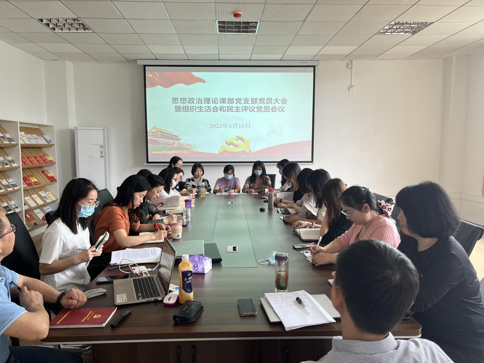 2022年3月16日,我校思想政治理论课部党支部在8201会议室召开三月党员大会、组织生活会及民主评议会。会议由思想政治理论课部党支部书记李玉林主持,课部全体党员参会,主要学习《中共湖北省委关于进一步加强党的政治建设坚持“两个确立” 做到“两个维护”》文件精神,召开支部党员组织生活会及民主评议会。