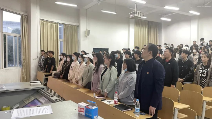 在全体参会人员齐唱的国歌后,播音主持艺术学院党总支书记侯亮荣为参会团干及入团积极分子发表了动员讲话。讲话中强调,要不断提高广大团干,入团积极分子等青年团体的思想政治素质,强调了党精神的传承,团精神的继承,作为党组织的后备军、青年团体的突击队,应当拥有的高尚品德并承担起重大责任。讲话结束后,学生代表廖晶晶发表讲话。在团课开班仪式最后,费燕琴老师为团课学习进行了强调说明并对本次大会进行了总结。