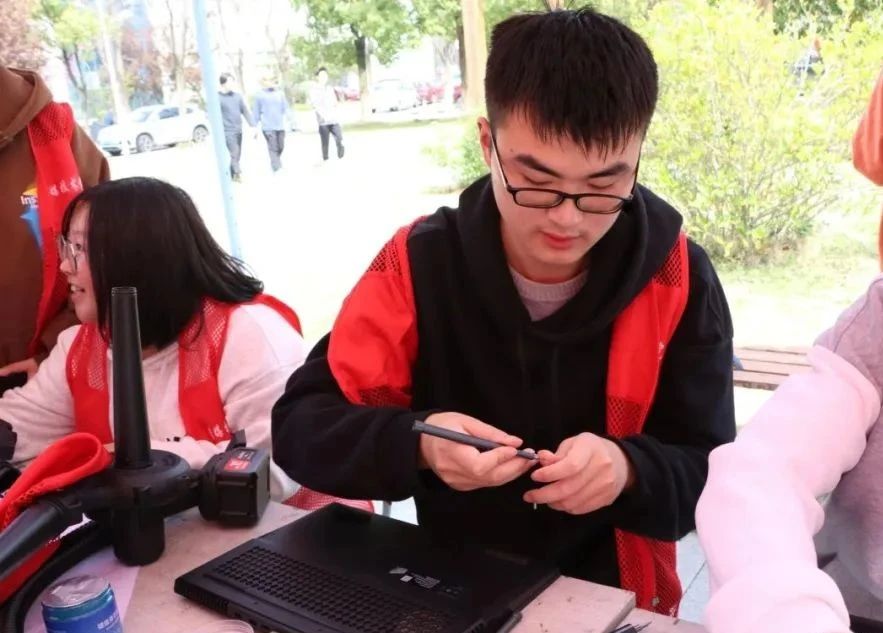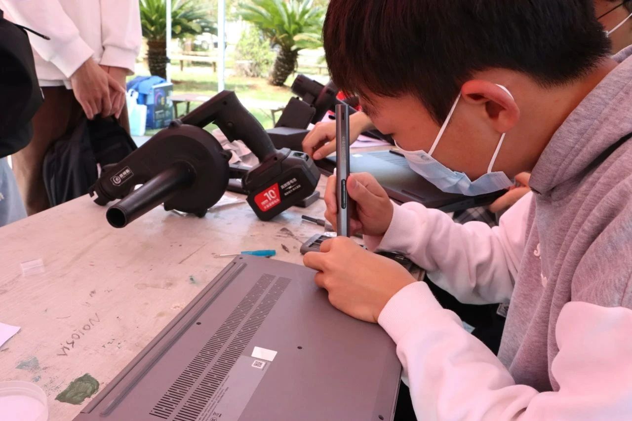 活动现场,志愿者们热情地为同学们的电脑进行清灰和维护。他们仔细拆卸电脑,用专业的工具清除积累的灰尘,并对电脑进行全面的检查和优化。志愿者们还对同学们在使用电脑中遇到的问题进行解答,普及计算机基础维修知识和正确使用方法,用实际行动诠释了“奉献、友爱、互助、进步”的精神。