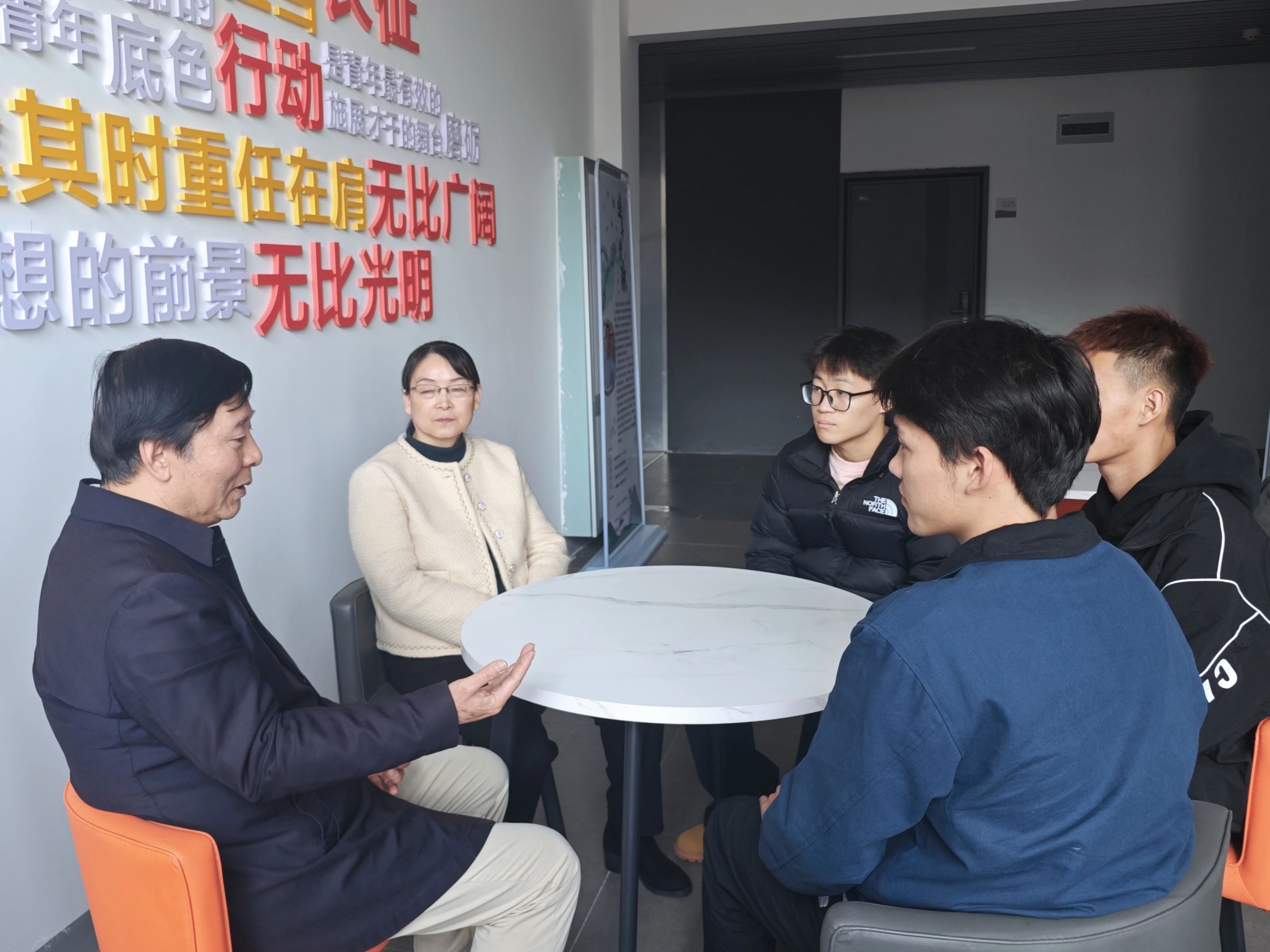 讲座结束后,刘玉堂教授与陶丽萍院长在B栋一站式学生社区与同学们深入交流,点明同学们的所学专业在荆楚文化的传承和发展过程中的作用,并指明当代大学生在传承荆楚文化中的实践方向。