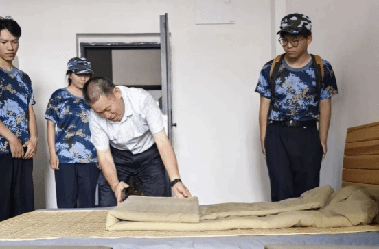 来到教官宿舍,能看到屋内打扫干净整洁,物品摆放井然有序,床铺整理方方正正,军事化要求已经渗透他们生活的方方面面。教官向大家介绍了屋内各个区域武平摆放的要求标准,还向同学们特别展示了叠被子的步骤和技巧。教官们表示,内务整理锻炼的是自律的意识,磨练心性,也体现着中国军人的高标准严要求。