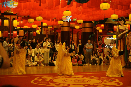 下午,师生走进黄石东昌阁 —— 这座高 108 米的九层建筑被称为 “城市阳台”,集古建筑艺术与现代文旅体验于一体。一层的沉浸式互动演艺区成为研学焦点,学生与 NPC 角色互动,参与“穿越盛唐”情境表演及“打卡寻宝”活动,在虚实交织中感受传统文化魅力。舞蹈专业学生身着民族服饰,在东昌阁广场上演古今交融的快闪舞蹈,以艺术形式展现传统文化与青春创意的碰撞。此外,师生探访演艺项目幕后工作区,深入了解文旅 IP 策划、剧本设计及执行流程,直观感受黄石在文旅创新中的探索实践。