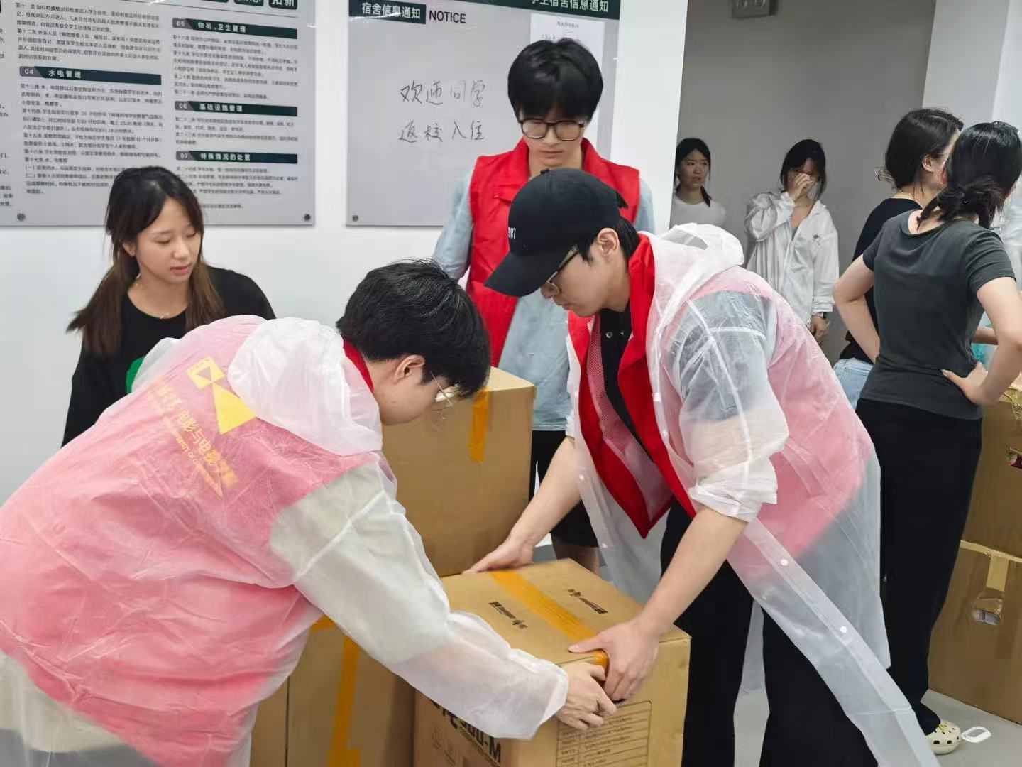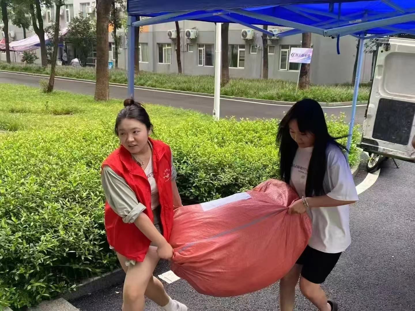 搬运过程中,学生志愿者们纷纷化身 “大力士”。面对沉重的行李和货物,他们毫不退缩,主动帮忙卸载物品。一趟趟穿梭在宿舍楼和货车之间,汗水湿透衣衫,但脚步从未停歇。无论是书籍、生活用品还是各种家具,他们都小心翼翼地搬运,确保每一件物品都能安全送达新校区。他们来来回回的身影,仿佛不知疲倦,只知道肩负着责任,要为同学们的搬迁保驾护航。