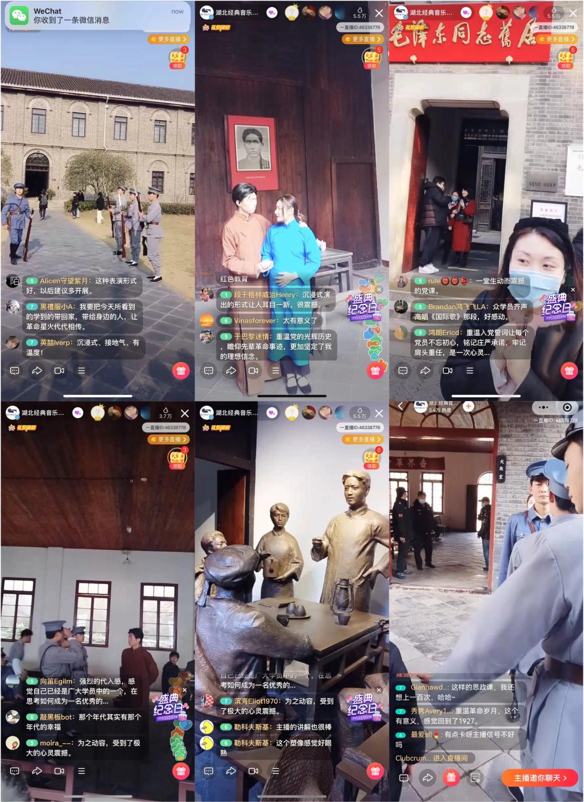 湖北经典音乐广播「一直播」对活动进行了全程视频直播,主播甘婷带网友云观展,并采访了参与活动的观众和参与情景剧表演的米兰体育网页版登录师生。线上累计观看人数达到44.4万人次,同时在线人数最多高达5.5万人次,近500条网友实时留言互动,有网友表示“为之动容,震撼心灵“、“感觉身临其境,上了一堂穿越时空的党课,找到了精神共鸣”、“身临其境,高度还原了那段峥嵘岁月”、“这样的思政课我还想上一百次”。