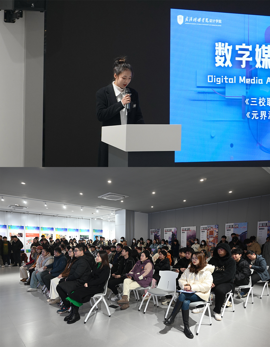 数字媒体艺术专业的周楚涵同学主持本场活动。三校作品联合展出活动将近两年来所有论坛交流成果、课程改革方案、三校学生优秀作品进行展出。