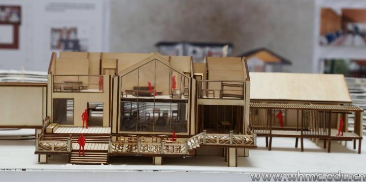 2014级环境设计专业学生吴玉洁的毕业作品《茶宿-武夷山民宿改建设计》,采用了古代木质建筑以茶为引,宣扬古典建筑。“设计以 ‘茶’为主题、‘共享’为契机进行设计,倡导人们在山水茶香之间遨游,在这个快节奏的生活中慢下来。”吴玉洁介绍道。