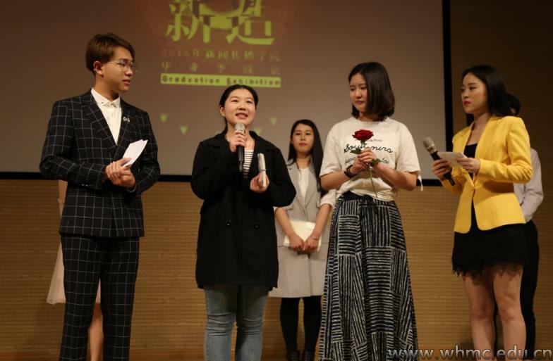 值得一提的是,作品展现场新增了送礼物环节。2017级广告学专业学生冉萌萌送毕业生们一本祝福纪念册,包含了在学校食堂收集的不同专业57个学生对毕业生的祝福语和56页的手绘花草图。两名考上硕士研究生的毕业生,还和学弟学妹们分享了考研经验。