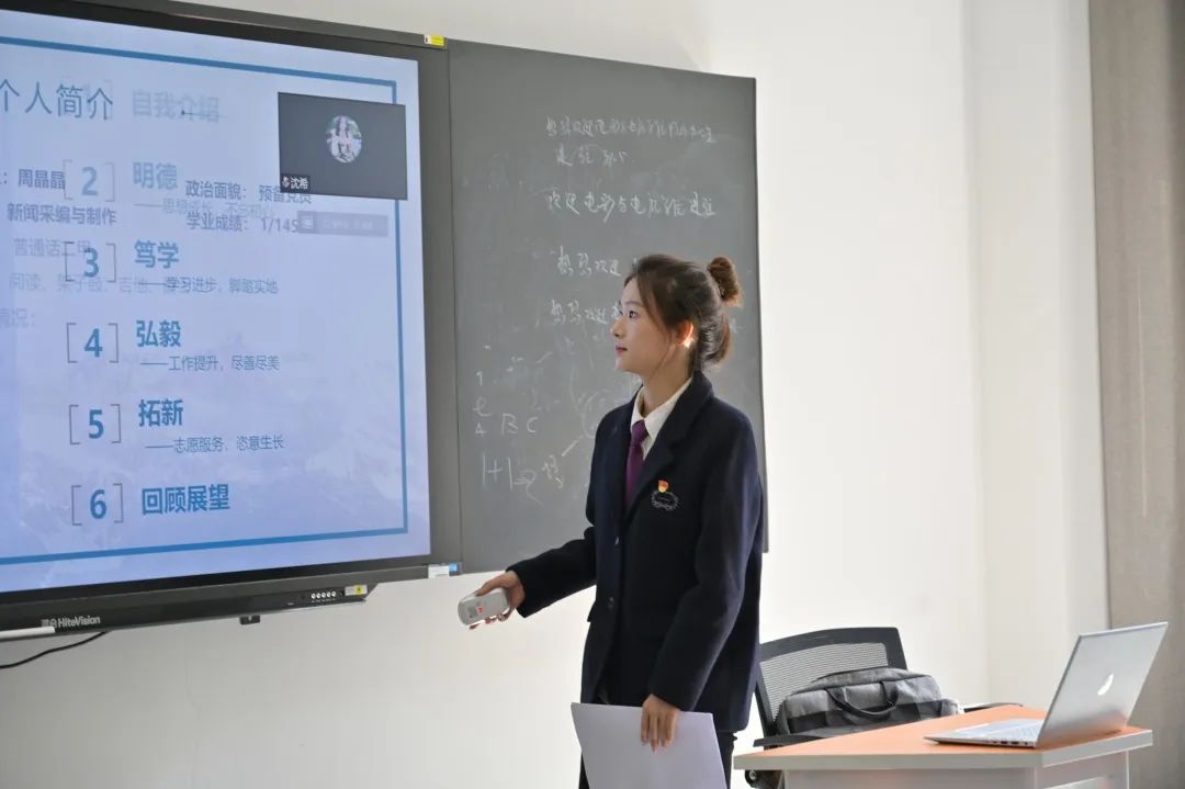 在会议中,九位优秀申请人经历了现场答辩、评委提问等环节,以被选拔为国家奖学金获得者的候选人,进而进行校级竞评。