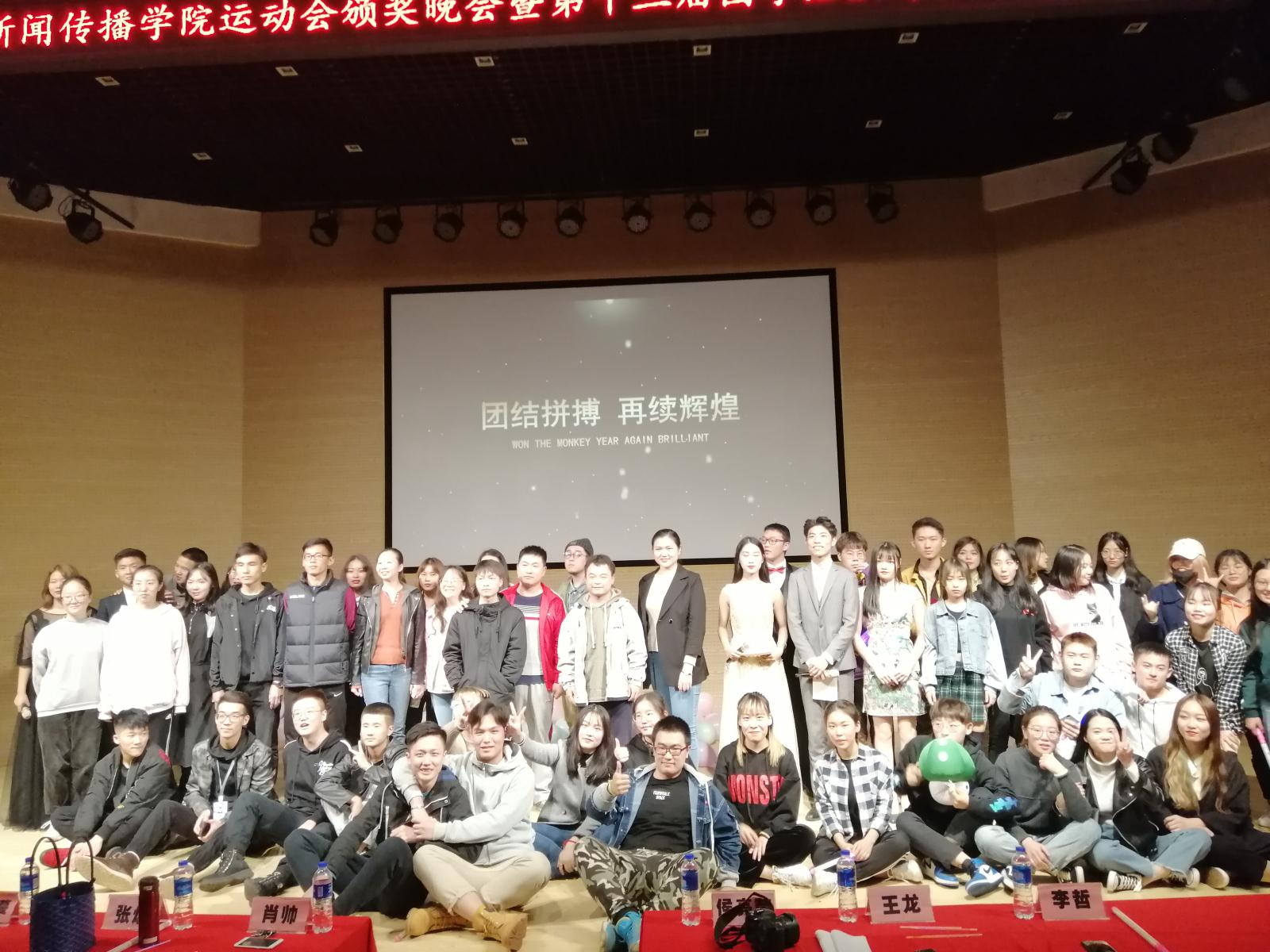 本报讯(文/记者程灿灿 图/摄影记者程灿灿)2018年11月14日下午6时,新闻传播学院运动会颁奖晚会暨第十三届团学组织部长聘书颁发仪式在我校圆形报告厅举行,参与晚会的领导有新闻传播学院党总支书记侯亮荣老师,新闻传播学院学生科科长、团委书记王龙老师,新闻传播学院团学组织指导老师李哲老师,新闻传播学院16级辅导员肖帅老师,新闻传播学院17级辅导员张煜老师,新闻传播学院18级辅导员张一蔓老师。