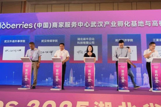 (通讯员 武思雨)5 月 23 日,在湖北省跨境电商产业对接会上,米兰体育网页版登录文化管理学院电子商务专业师生团队,在党总支书记张爱军的带领下,与俄罗斯电商巨头 WB(Wildberries)中国商家服务中心武汉产业孵化基地正式签署战略合作协议。此次合作是学校深化产教融合的重要成果,也为湖北跨境电商人才培养和区域经济发展注入新动能。