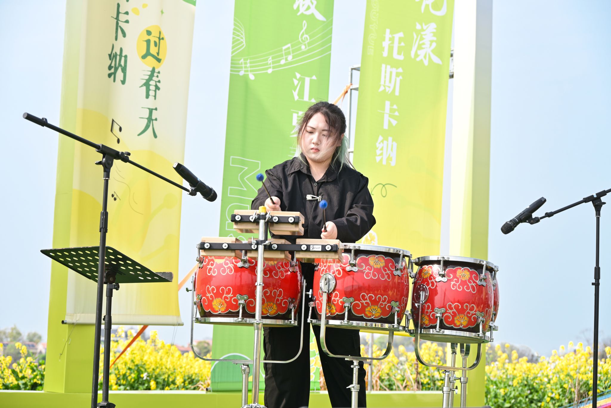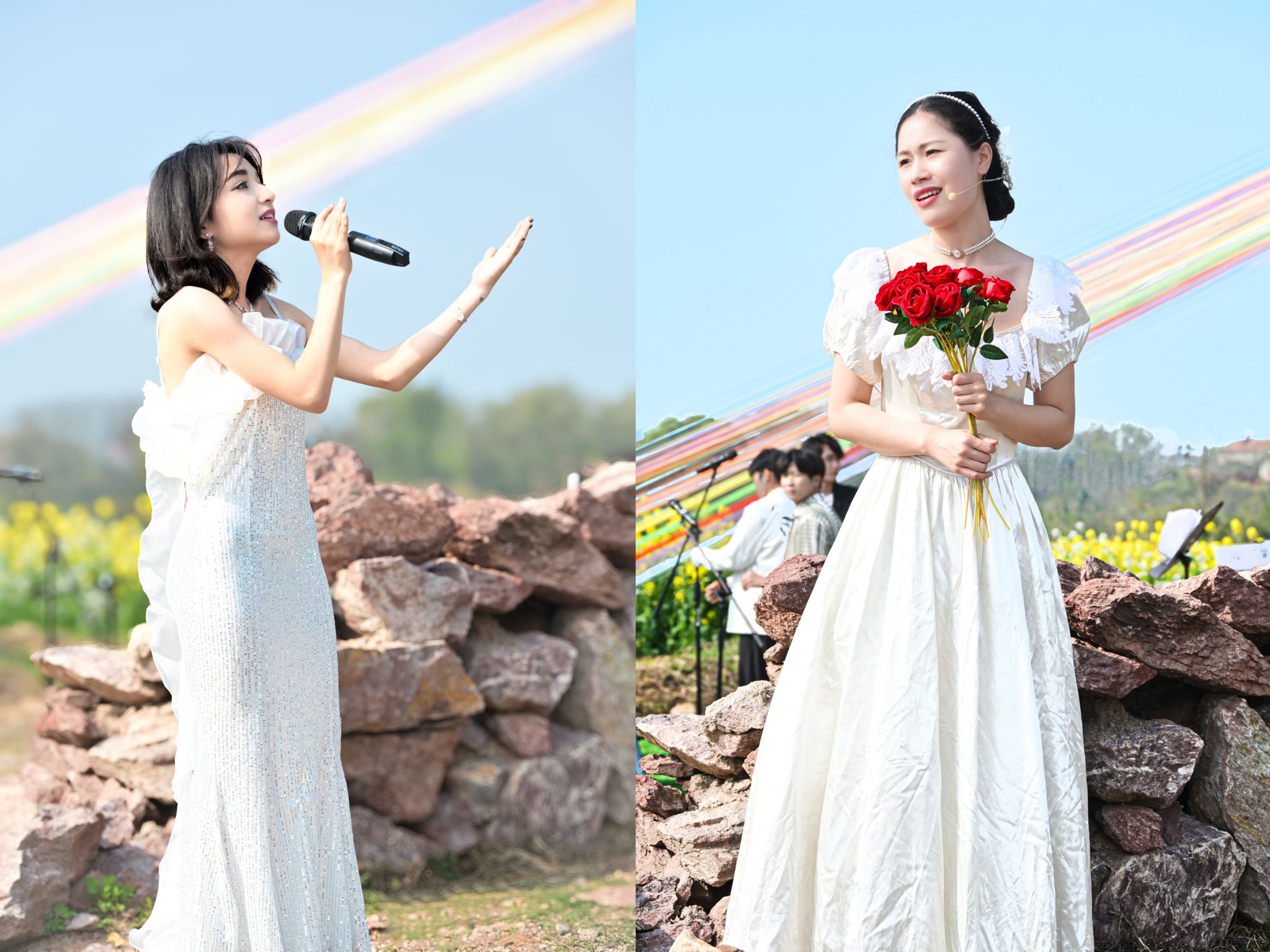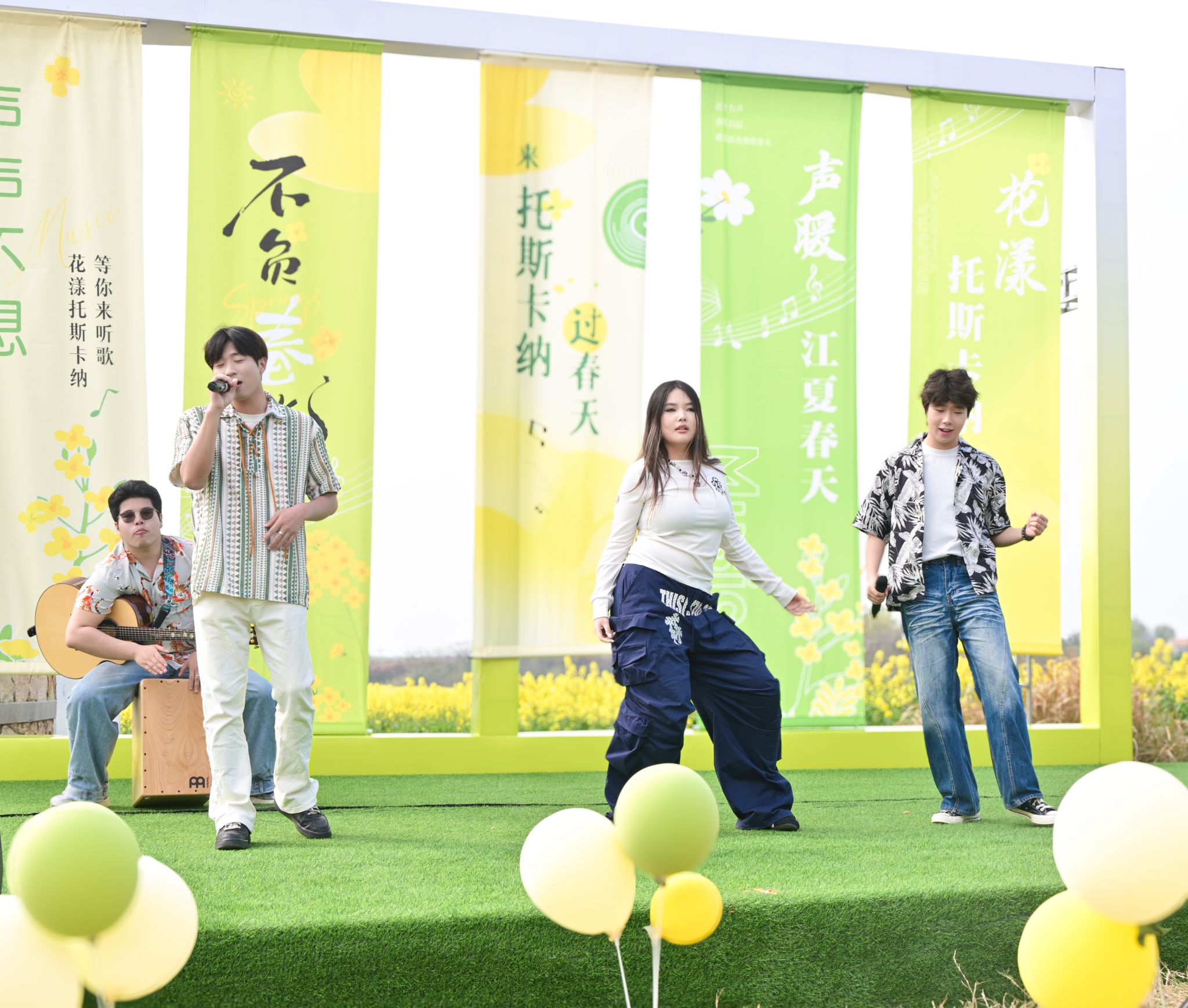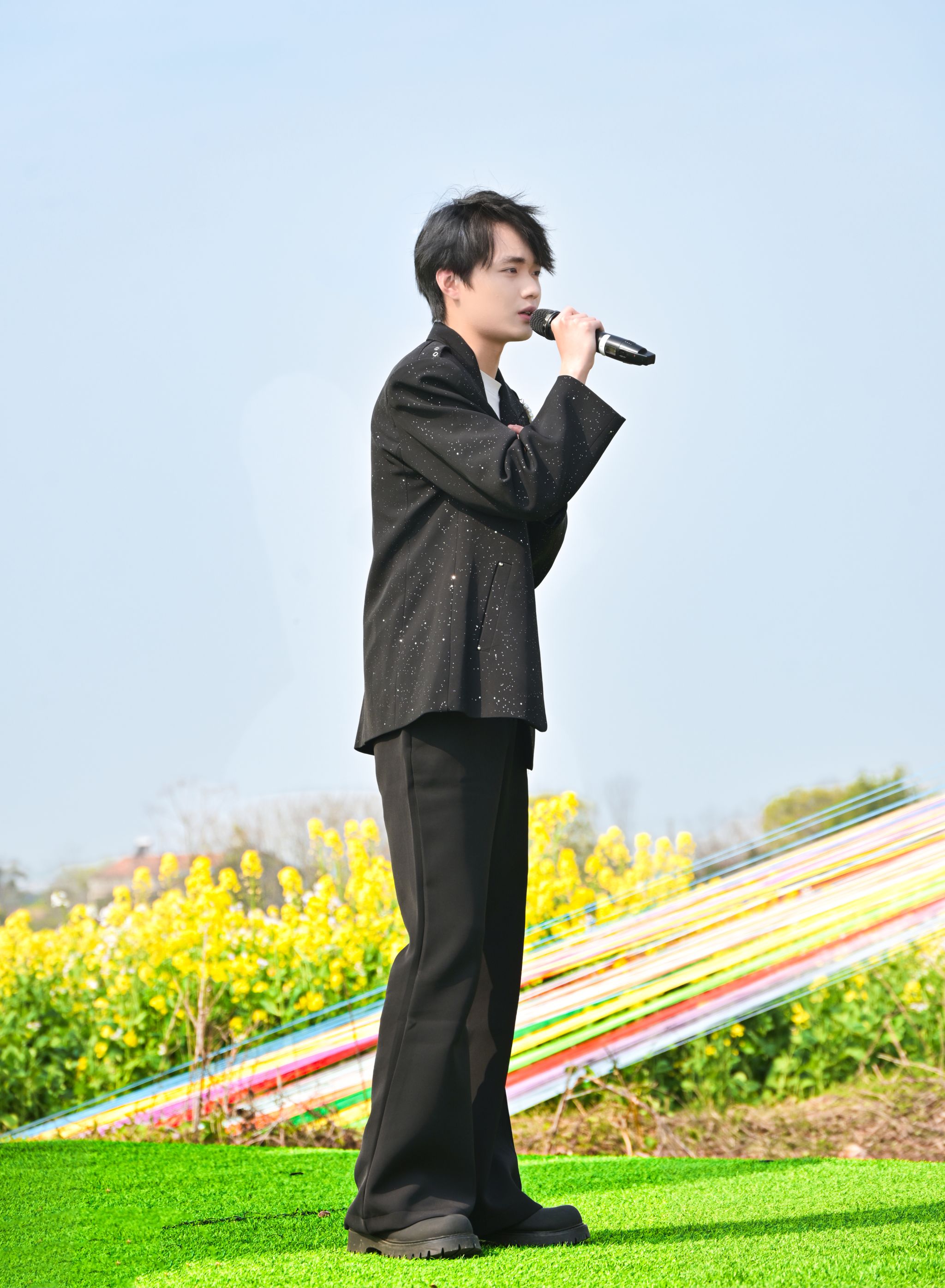 随后,《夜空中最亮的星》《弯弯的月亮》等一首首经典曲目相继唱响,歌声与微风交织、与花香相融,将青春的朝气与春日的温婉洒向整片田野,让现场观众沉浸式感受自然与音乐的碰撞之美。