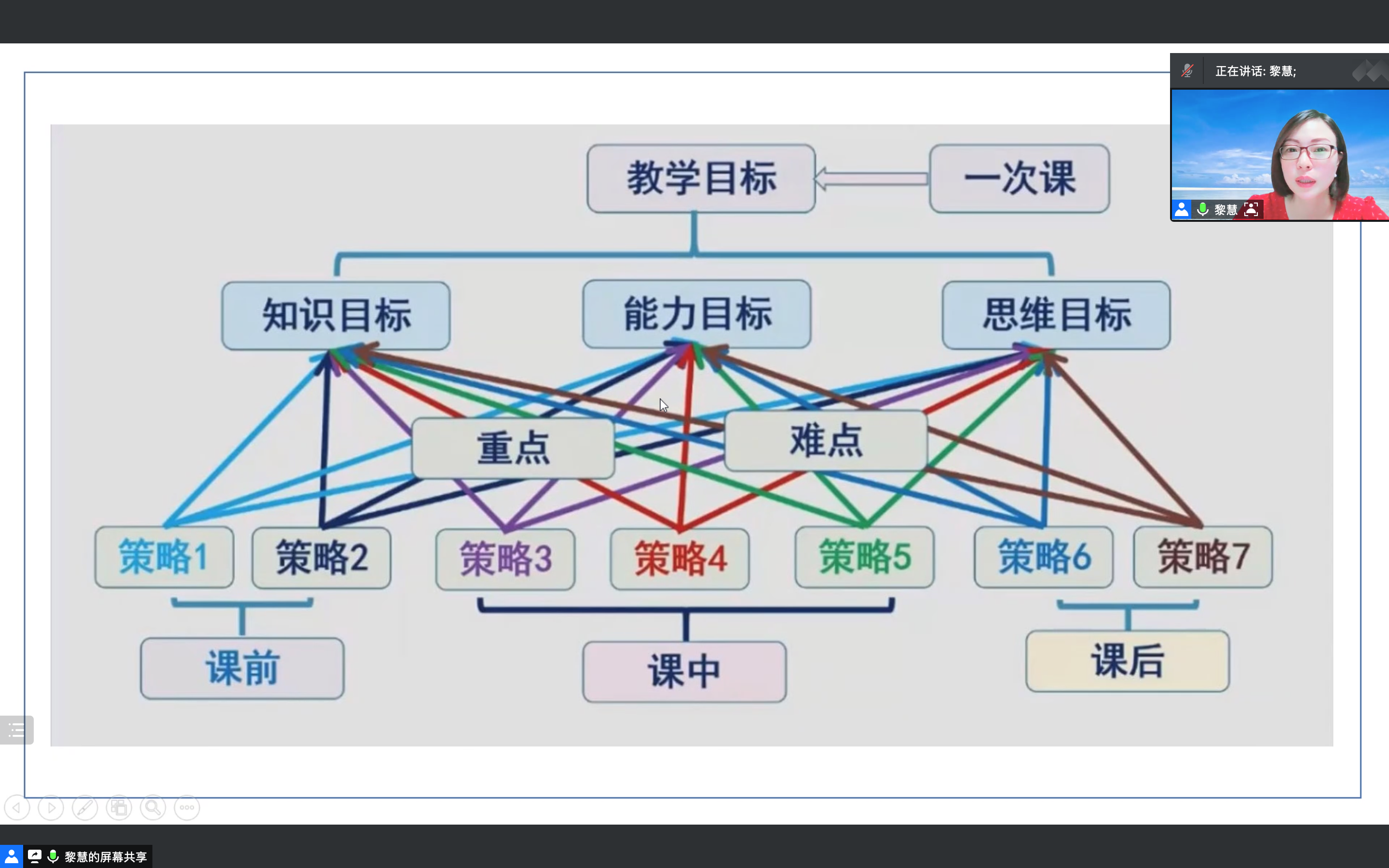 黎慧老师就“如何将教学课堂转化为竞赛实录课程”和“教学创新点的凝练”两方面进行讲座,分享了自己参加第二届湖北省高校教师教学创新大赛的备赛经验和现场体验。参会教师表示,从本次讲座中了解了“解读文件的重要性”,“从哪几个角度去设计教学比较全面”,“如何在教学活动中融入信息手段”等等。