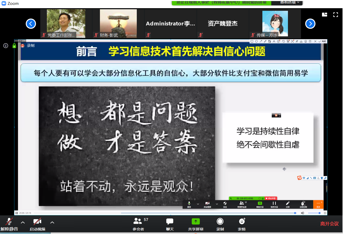 4月17日,教师发展中心组织学校教学和行政管理干部通过ZOOM平台参加了《教学管理信息化》专题直播讲座,学校各学院党总支书记、教学副院长、教研室主任、教秘、行秘和全体行政职能部门副科级以上干部及教学管理相关人员等92人参加了本次培训。会议分两个会场,分别由由学校校长助理、人事处(教师发展中心)姚晓菊和人事处(教师发展中心)处长助理王静主持。