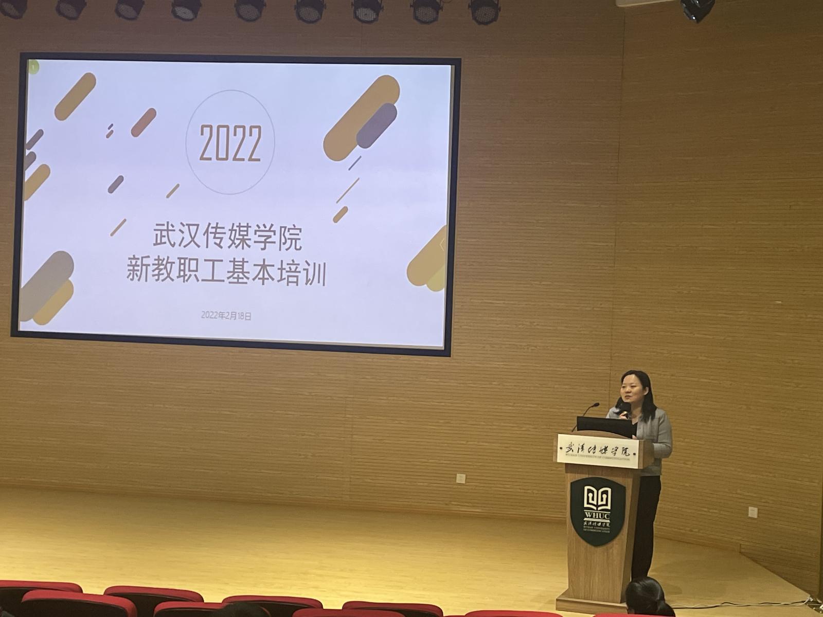 会上校长助理蒋萦详细介绍了我校的办学历史和学科专业特色,并和新教工们分享了我校近年来在专业调整、课程建设和提高本科教学质量等方面的重要举措。并从亲身经历出发,积极指引新教师们做爱学生、爱学校、爱教育的“三爱”好教师,积极努力把学校建设成为华中地区最有温暖的传媒院校,并鼓励新教师带头践行社会主义核心价值观,树立正确的教师职业观,自觉增强立德树人、教书育人的荣誉感和责任感,做学生健康成长的指导者和引路人。